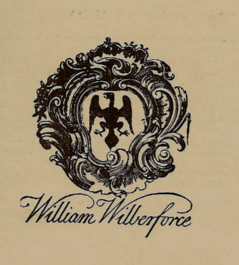 Later illustrations have shown the device with the wings either down as in the bookplate that William Wilberforce used, |